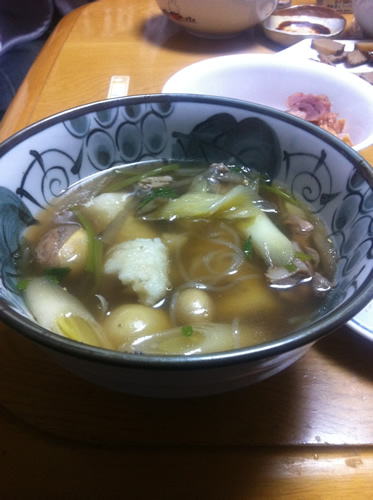 きりたんぽと比内地鶏の汁、思わず撮影。