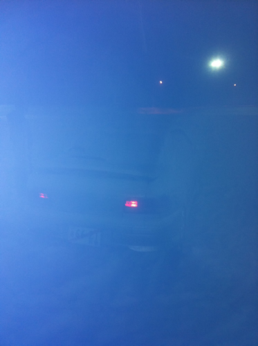 この後、空と地面と側面とが真っ白になり車というより宇宙船を操縦している気分に。