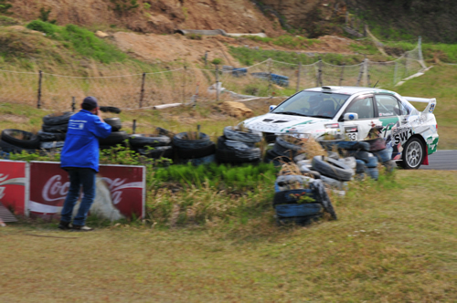 人間ジムカーナフィニッシュ。小癪なもと社員、西村、「ぶっちぎりの優勝です」 しかも今年、タイムランクも私のすぐ上に。どこまでも小癪な男。林道もその調子で頼む。(笑)