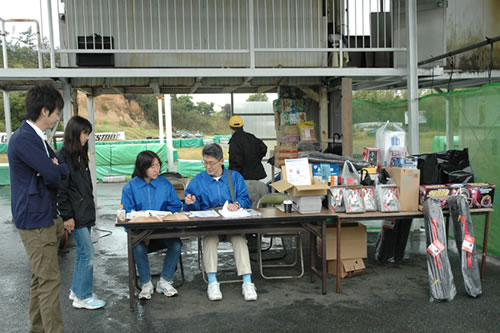 受付スタンバイ。今年も賞品大量でしたが、雨につき、展開出来ず。