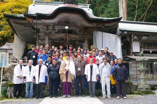 今年もラリースタートは、菰野町田口の誇る、勝利の神様、福王神社です。 エントラントの皆さんには、ラリー前のウオーミングアップも兼ねて、神社前まで坂道を上って頂きます。 ドラミの後、安全のご祈祷を頂き、記念撮影を行います。