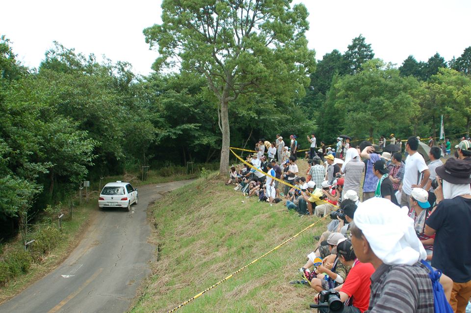 ↑ラリーカーの先導役、0カーが出発です。 どうも、オフィシャルとしての役務を 忘れそうになりながらのスタートだったかも? こんなに盛り上がるラリーなら、やはり選手で 出たくなるのはわかります。