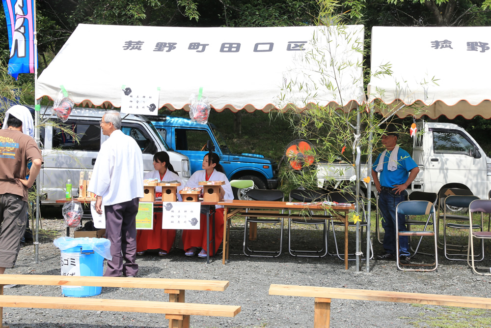 この日、駐車場の確保から管理、送迎に屋台出店は チーム福王=地元の有志団体の皆さん。